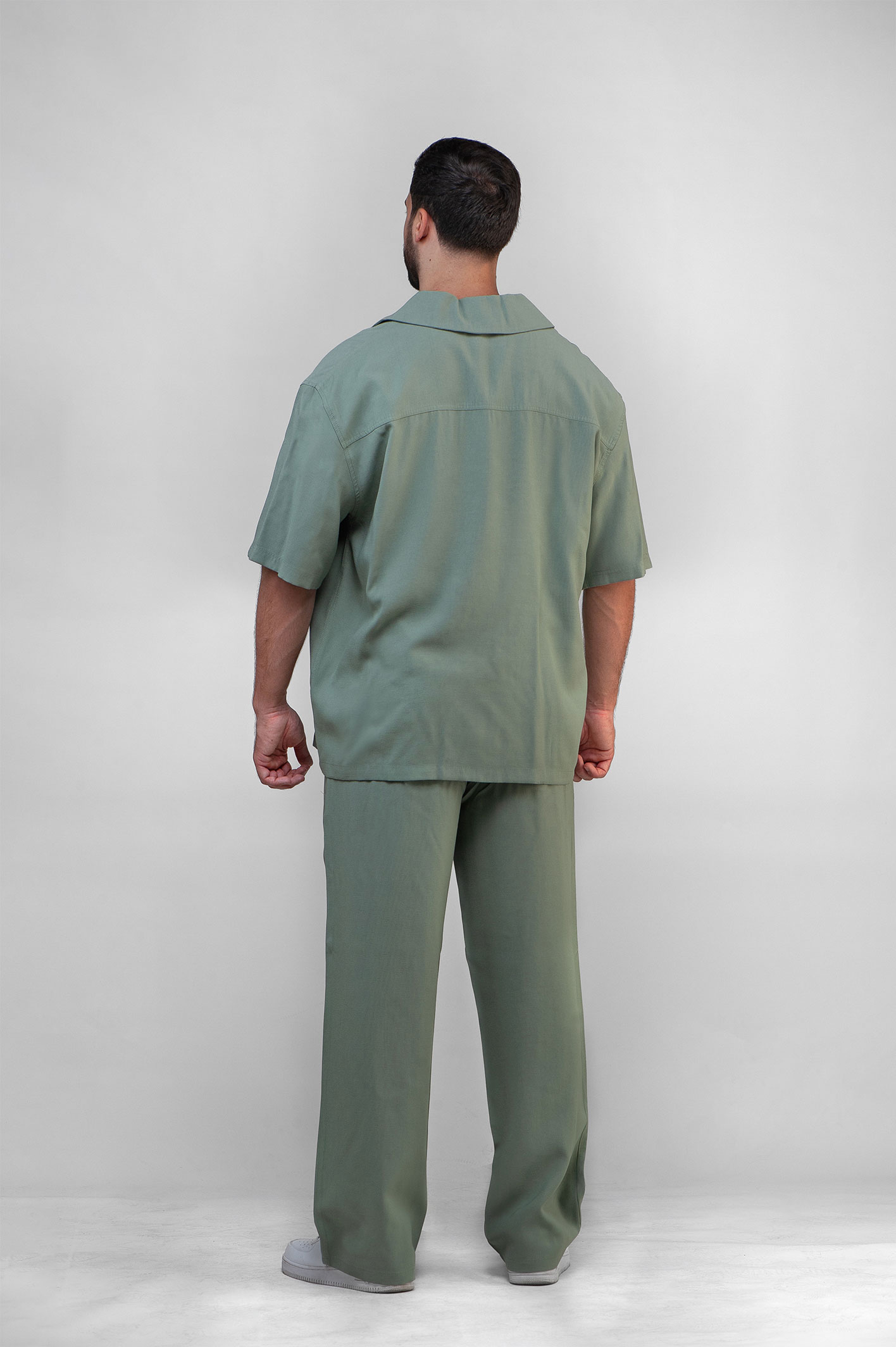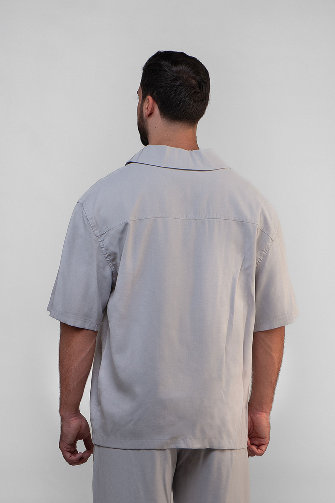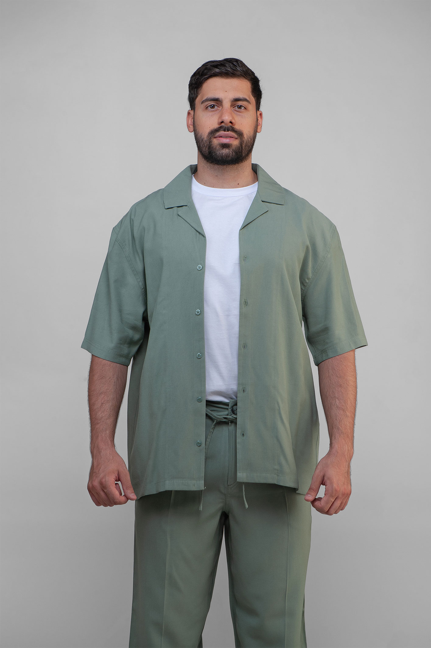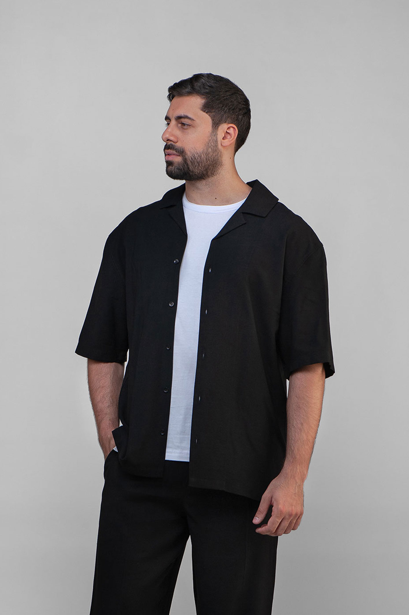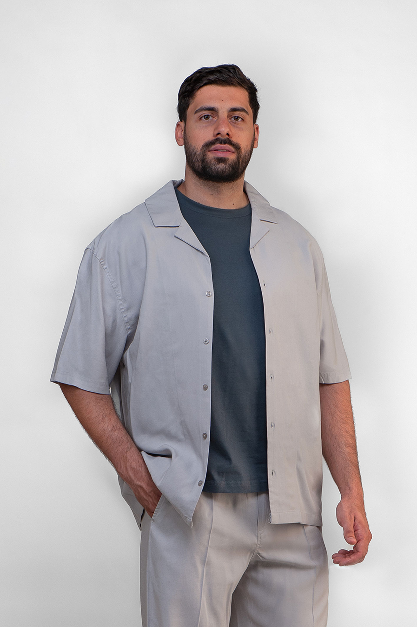 قميص تنسل رجالي نصف كم .. تصميم شبابي بوقفة مرتبة وقماش ثقيل يمنح لمسة فخمة وقصة اوفرسايز تناسب الإطلالات اليومية